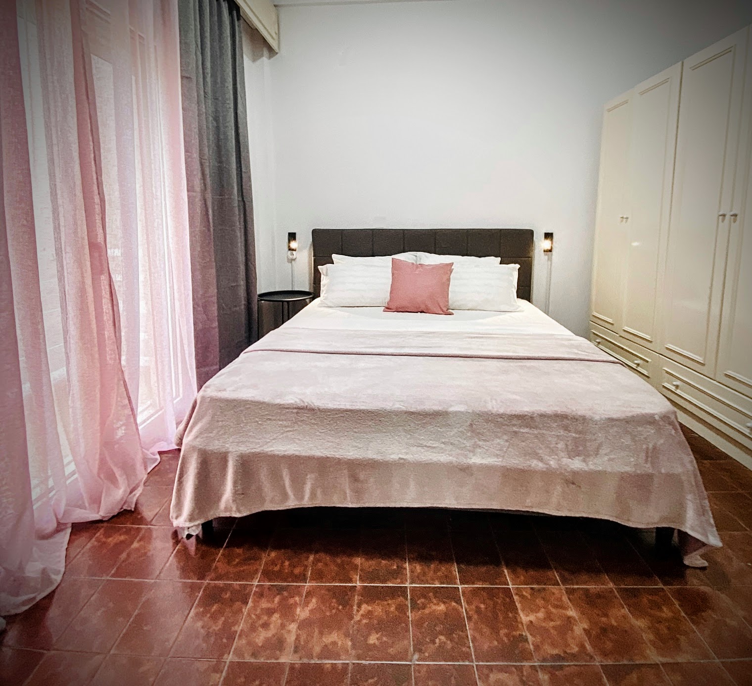 - bedroom with double bed and large wardrobe